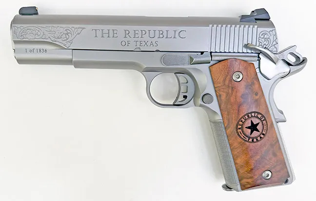 The Republic of Texas Commemorative pistol is a Government-length 1911 with Colt 70 Series internals. Empty weight is 2 pounds, 2