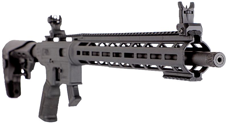 The TM22 Flash combines modern tactical elements with proven reliability, featuring an 18″ rifled target barrel for accuracy, a full top rail with flip-up sights for quick optic integration, M-LOK forend and bottom Picatinny rail for accessories, an adjustable collapsible stock with cheek riser on a commercial buffer tube (13-14.5″ length of pull), AR pistol grip, and flat-faced trigger for rapid follow-ups. At just 4.85 lbs unloaded and 34″ overall, it’s built for all-day recreational use. The rifle includes two 10-round polymer magazines and is fully compatible with aftermarket 15-round and 25-round magazines for extended sessions. With complete in-house vertical integration, every component is manufactured to ensure quality, durability, and value.