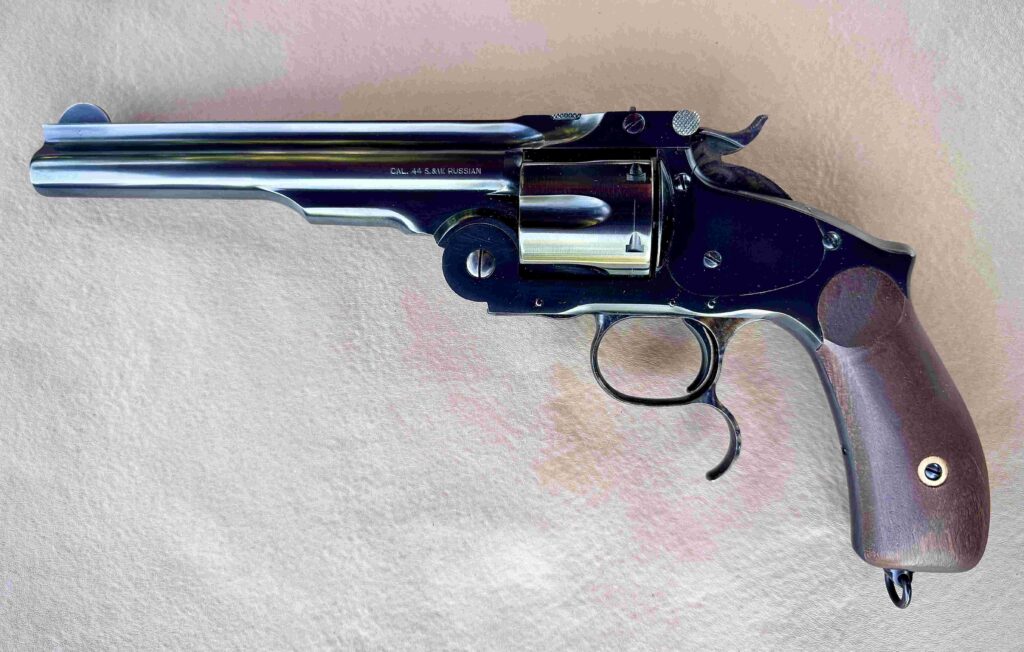 A Russian general was in the U.S. overseeing the production of rifles being manufactured for the Czar’s government. S&W approached him about a contract for their new revolver. While the general was impressed with the six-shooter, the cartridge wasn’t satisfactory. What the Russians wanted was a round where the bullet was smaller than the case and inside lubricated. S&W came up with a cartridge that met these specifications; it had a 246 gr. bullet, propelled by 23 gr. of black powder, and a velocity of 750 FPS. The history-making .44 Russian was born. The Russians contracted for 20,000 revolvers in May 1871. As production began, improvements were made to the design and the Russians also required some specification changes. As the Model 3 Russian evolved, it went through to the final Model 3, Third Model or New Model Russian in 1874. This revolver had a 6-1/2” barrel, an improved extractor/ejector with a smaller housing below the barrel, a “knuckle” at the top of the backstrap, and an unusual spur incorporated into the bottom of the trigger guard. In total, the Russians contracted for 70,000 of these S&W revolvers. Naturally, they also caught on in the U.S. with frontiersmen, lawmen, and outlaws alike. Supply could not keep up with demand.