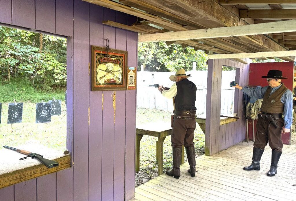 Here, the author is using the Taylor’s Model 3 Russian in a cowboy action shooting match put on by the Knob Creek Gunfighters Guild SASS Club.