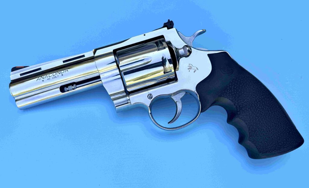 Thirty-five years ago, Colt introduced the Anaconda double action (DA) revolver. Initially, it was chambered in .44 Magnum, then some three years later, was offered in .45 Colt. The Anaconda was the first large-frame, swing-out cylinder sixgun since the New Service, which had been discontinued nearly 50 years earlier, and was first cataloged in 1898. It was a variation of the Model 1892, but with an up-sized frame and cylinder to allow it to be chambered for cartridges like the .38-40, .44-40, .45 Colt, and others. One .45 Colt version served the military during the Moro Rebellion in the Philippines as the Model 1909. When the U.S. entered WWI, there was a shortage of Model 1911 service pistols in .45 ACP, so Colt chambered the New Service for this cartridge, and it became the Model 1917. After 43 years of production, the New Service was discontinued in 1941.