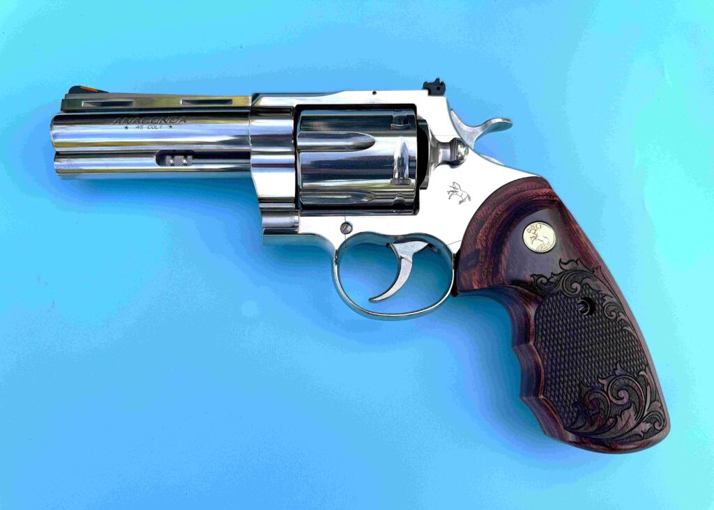 To dress up the Anaconda, the author fitted it with these attractive “Fingergroove Super Rosewood” grips from the Altamont Company.