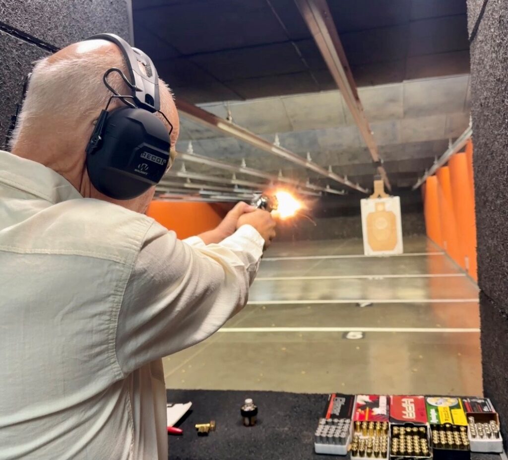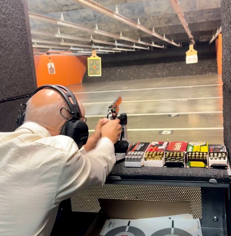 On range day, I readied my Garmin Xero C1 Pro chronograph to get bullet velocity measurements. I also sent a bullseye target down to the ten-yard line so I could chronograph and check my sight setting simultaneously. I discovered that I had to lower the rear sight as far down as it would go, and move it just a couple of clicks to the right. This gave me a point of aim (POA) 6 o’clock of the center ring of the target. I found that with some of the lighter-weight bullets, point of impact (POI) was slightly lower. The velocity data can be seen in the performance table.